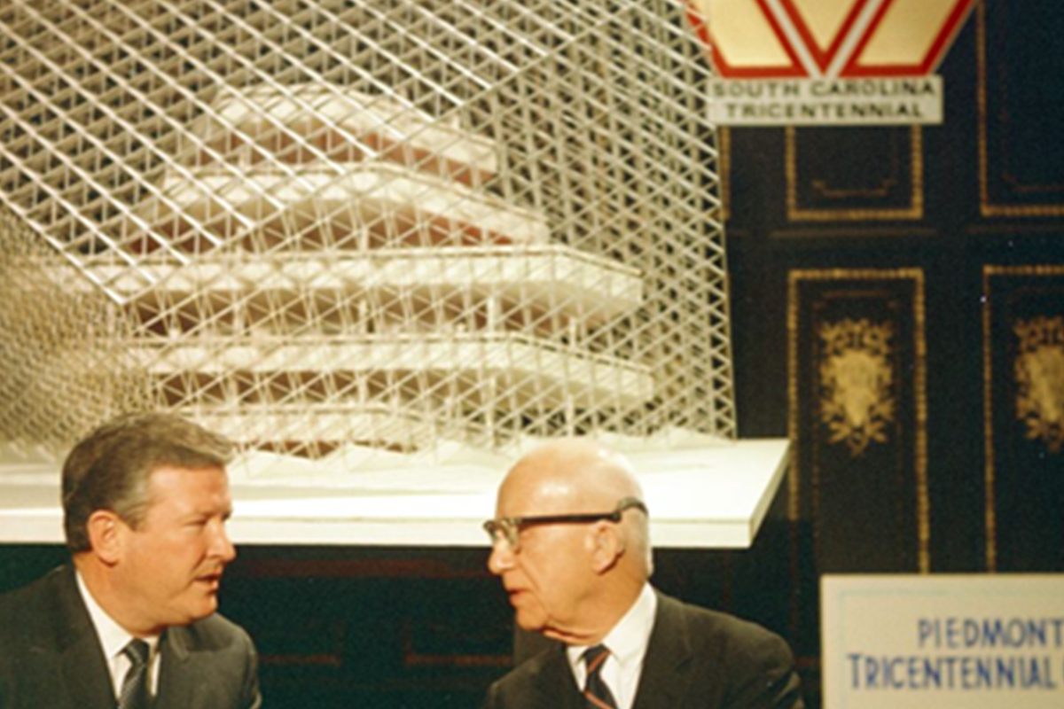Governor Robert McNair and Buckminster Fuller at the unveiling of the Tetron model